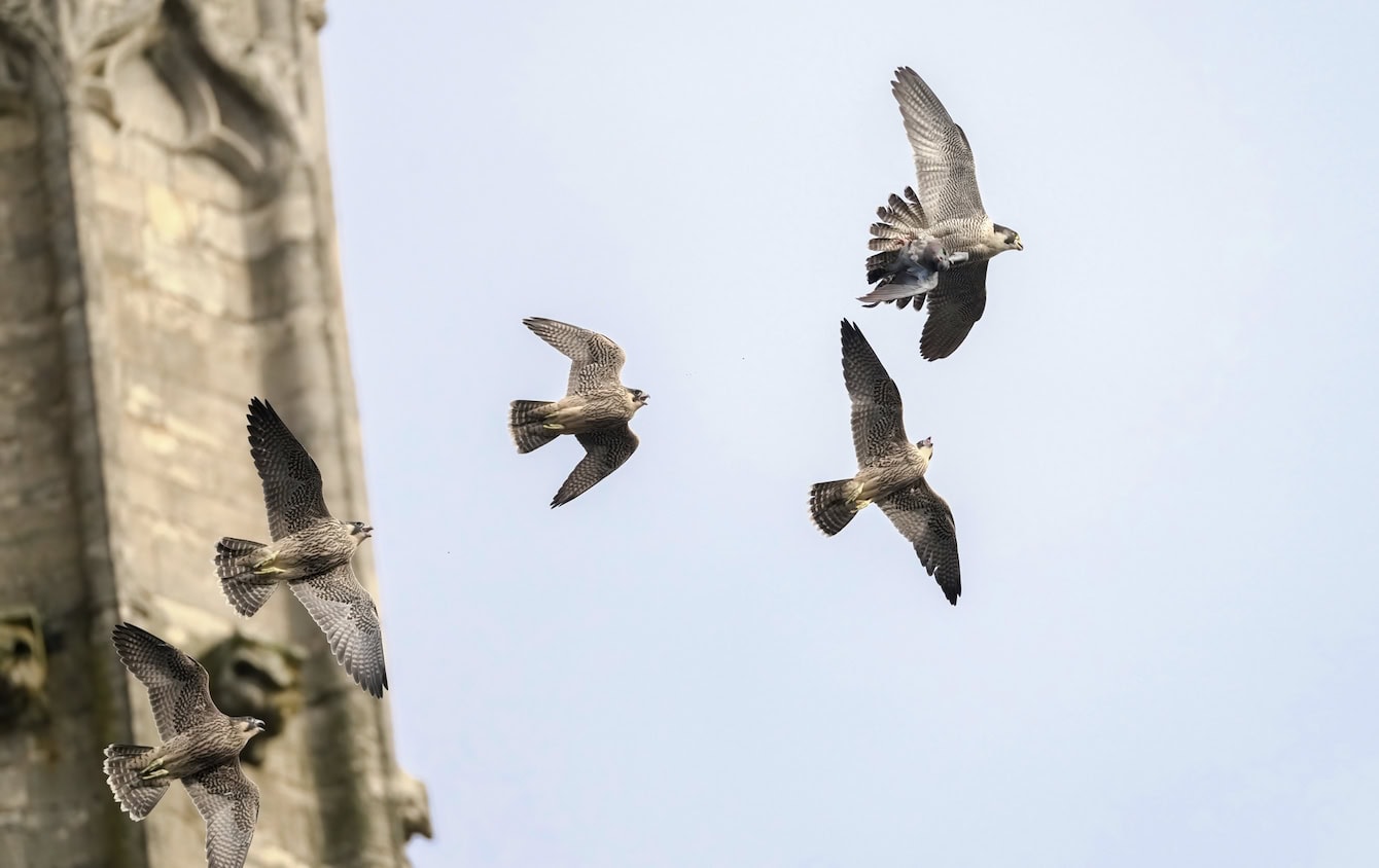 Since then, the cameras have captured incredible moments, from the hatching of new chicks to the dramatic arrival of a new female in 2023 after the previous resident, one of the UK’s oldest recorded wild peregrines, died. Viewers have been treated to the rare sight of four chicks exploring the cathedral ledges before taking their first flights and in recent weeks, a pair of peregrine falcons have laid four more eggs at the cathedral.