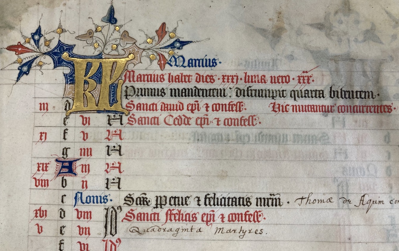 The Bury Psalter was written for, and used by, the Abbey of St Edmund and includes all the Psalms, a list of Saints, and hymns.