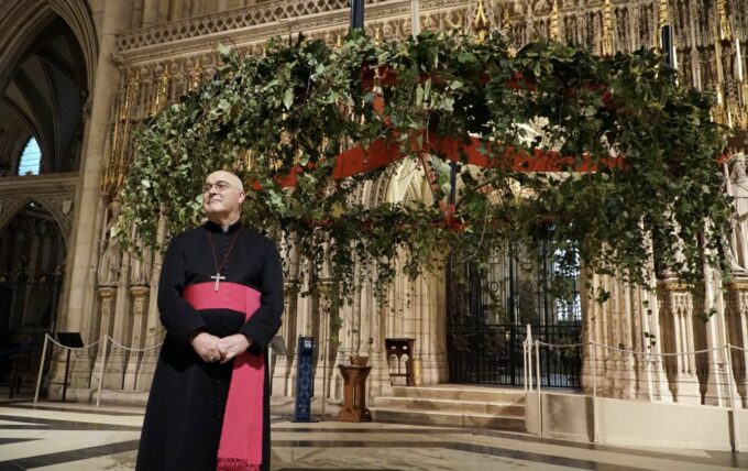 The Archbishop of York, Stephen Cottrell, helped to raise the Advent Wreath beneath York Minster’s Central Tower yesterday as the cathedral