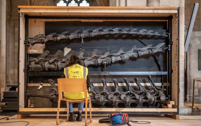 This 85ft Jurassic giant has been unpacked and painstakingly re-assembled in the nave of Norwich Cathedral. In photos: 16 crates, 356 bones, one