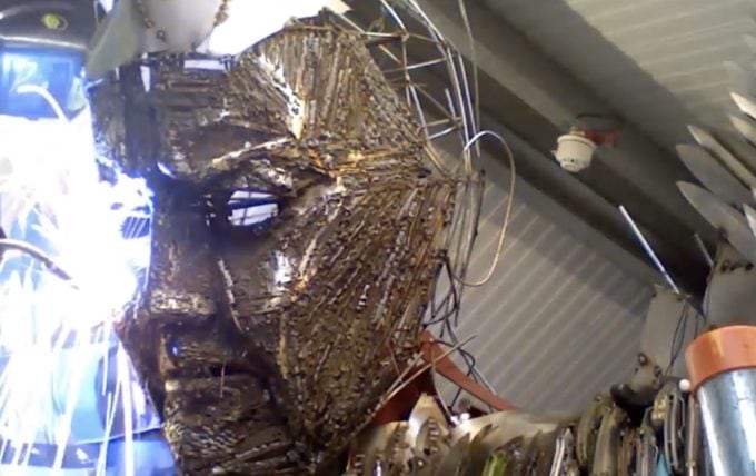 This 27ft statue built from 100,000 confiscated knives and blades by sculptor, Alfie Bradley will remain in place outside the West door of