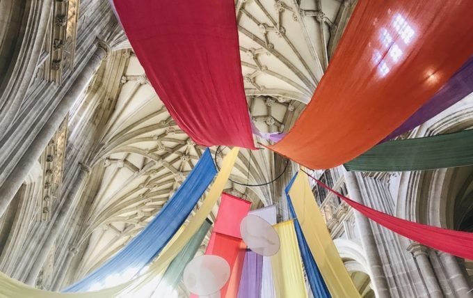 A familiar symbol of our life in lockdown has been reimagined to welcome back visitors into Winchester Cathedral. The colourful installation by